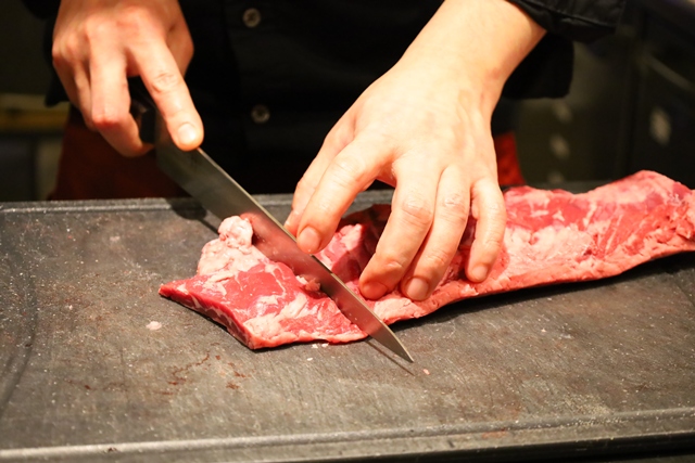 カイノミはしっかりとした厚みがありますが、こちらも見事な筋切りが施されており、驚くほど柔らか。