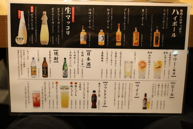 絶品のお肉が続くと、やはり欲しくなるのが美味しいお酒。 ここで改めてドリンクメニューをチェックしましたが、そのラインナップの豊富さに驚きました。定番のビールはもちろん、焼肉店では珍しい銘柄も揃っていて、選ぶ楽しさがあります。