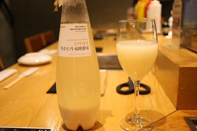 私は、人気の生マッコリ「ボクスンドガ(グラス)」をオーダー。非常に飲みやすく、お肉との相性も抜群です!
