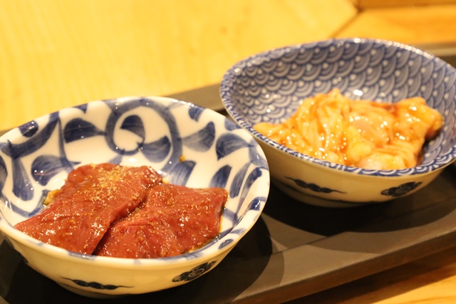 選べるキムチ(白菜と大根をチョイス)を味わっていると、丁寧な「手仕事」が施されたお肉たちが運ばれてきます。