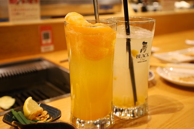 ここでオーダーしたのが「凍結みかんサワー」。凍ったみかんがゴロゴロ入った一杯は、お肉の脂をすっきり流してくれて、後半のリフレッシュに最高です!