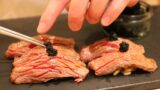 通天閣の喧騒を離れ、ひっそりと佇む隠れ家、Mべっ邸。半分閉ざされたシャッターが、まるで秘密の扉のよう。足を踏み入れると、そこは日常を忘れさせてくれる、大人のための美食空間。料理人が奏でる、五感を刺激するパフォーマンスと、独創的な創作和食が食通たちを魅了します。特に、日本酒好きにはたまらない、こだわりの日本酒とのマリアージュは必見です。