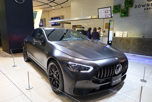 カフェはメルセデス・ベンツのショールームに併設されており、店内にはピカピカのベンツが展示されています!車好きにはたまらない空間ですが、ここでは車のセールスは一切なし。純粋にカフェでゆったりと寛げるのが魅力です。