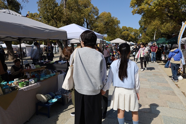 ハンドメイドのアクセサリーや雑貨、無添加のグルメ、ワークショップなど、約100店舗がずらりと並ぶ、活気がありつつも穏やかな雰囲気の市です。