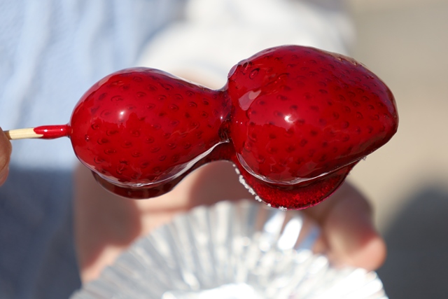 子供たちに大人気だったのが、フレッシュな「いちご飴」。真っ赤でツヤツヤな見た目にお目目がキラキラ!