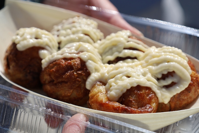 濃厚な「龍のたまご」を使用した「たません」や、バリエーション豊富なたこ焼きが楽しめます。今回は「岩塩マヨ」をチョイスしましたが、アツアツの生地に岩塩とマヨネーズのコクが絶妙にマッチして最高でした!