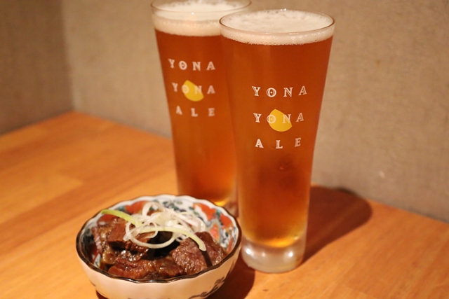 まずはクラフトビール「よなよなエール」で乾杯!ホップの華やかな香りが、これから始まる炭火料理への期待を高めてくれます。