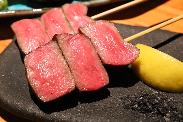ハラミ串&厚切りとろ牛タンは、炭火で一気に焼き上げられたお肉は、香ばしさが格別!特に牛タンは厚みがあり、噛むたびにジューシーな肉汁が溢れます。