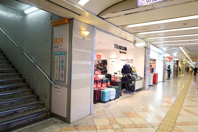 なんば〜日本橋を結ぶ地下街「なんばウォーク」のB24出口を出てすぐの場所にあります。雨の日でもアクセスしやすく、待ち合わせにも便利です。