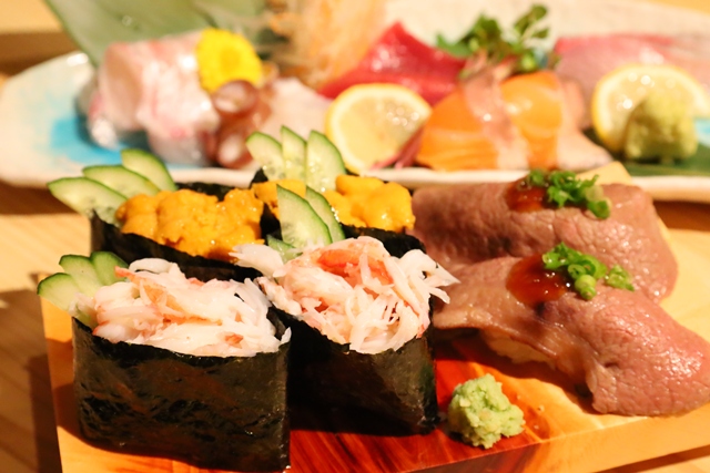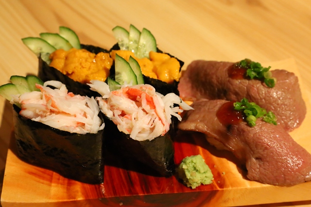 続いて「ズワイガニ軍艦」「うに軍艦」「和牛炙り」。