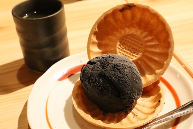 締めには「黒ゴマのモナカアイス」をいただき、お腹も心も満たされました。