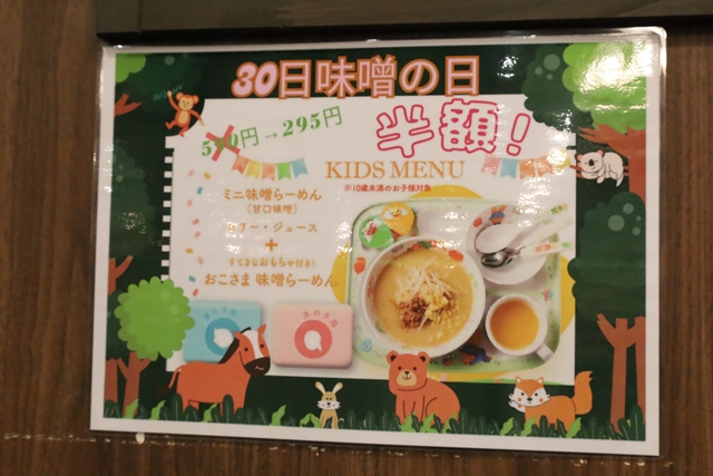 (ミニ味噌らーめん、ジュース、デザート、おもちゃ付)があり、お子様連れでも安心して利用できます。