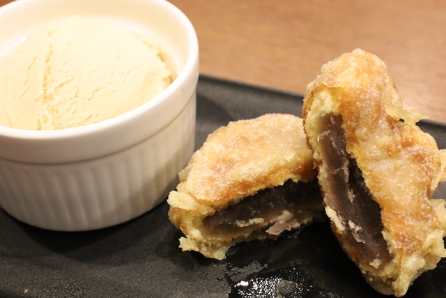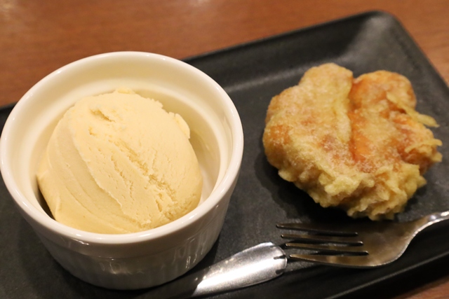 食後のデザートには、「揚げもみじ饅頭味噌ミルクアイス」をいただきました。