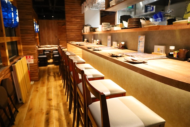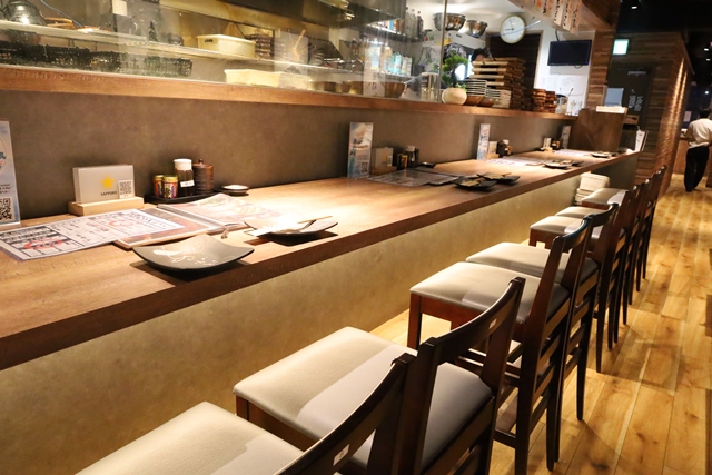 店内はカウンター席とテーブル席があり、全60席と広々としています。