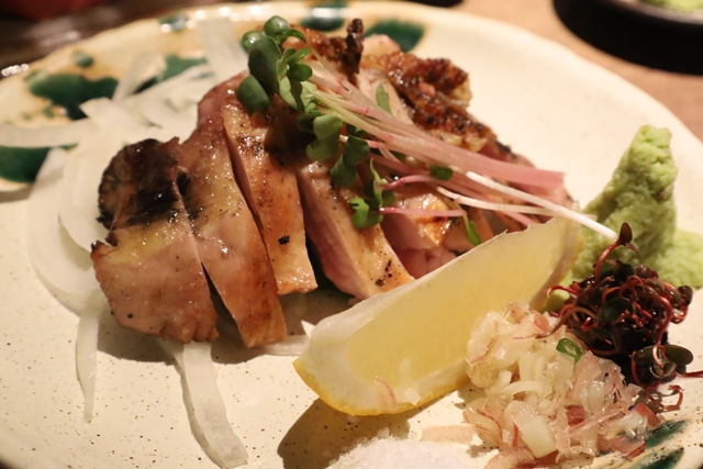お店の看板メニューである「虎鶏」の魅力を最大限に堪能できるのが、「極み炭火焼き」と「極みももたたき」。