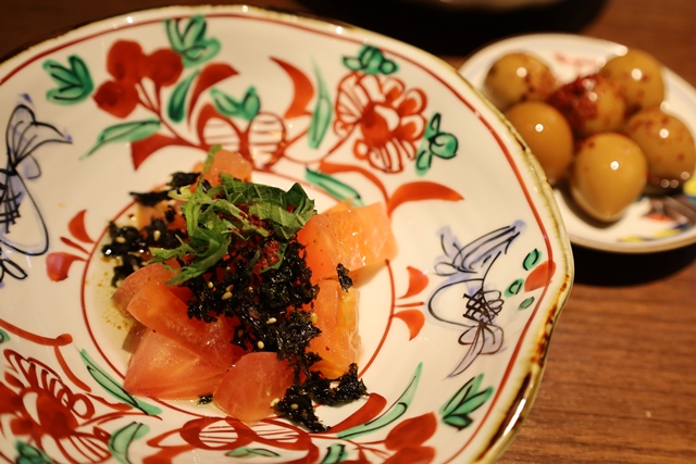 特に、やみつき無限トマトのフレッシュな酸味と甘みが、お酒が進むスモーク半熟鶉の濃厚な燻製香を絶妙にリフレッシュしてくれ、ついつい手が伸びてしまう美味しさでした。
