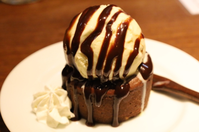 食後のデザート〆にいただいた炭焼きフォンダンショコラバニラアイスのせは、中からとろりと濃厚なショコラがあふれ出し、口いっぱいに幸せな甘さが広がる至福のスイーツでした。