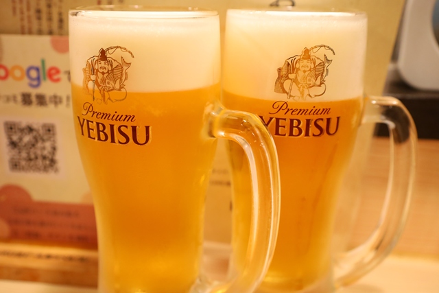 まず、エビス生ビールで乾杯!スッキリとした味わいが、これから始まる美味しい料理への期待を高めてくれます。