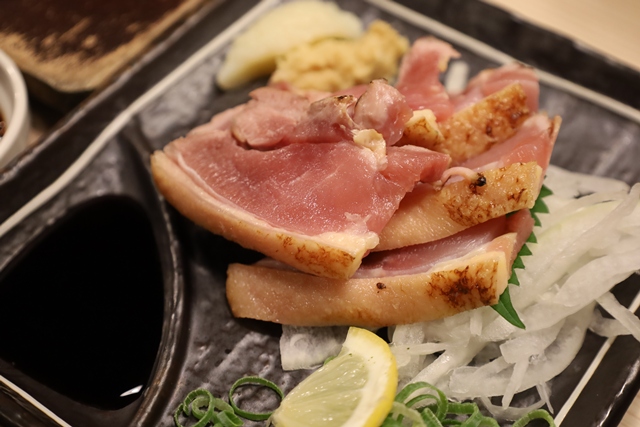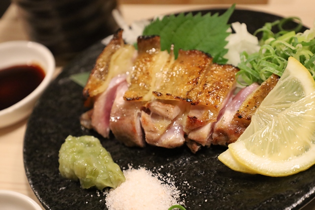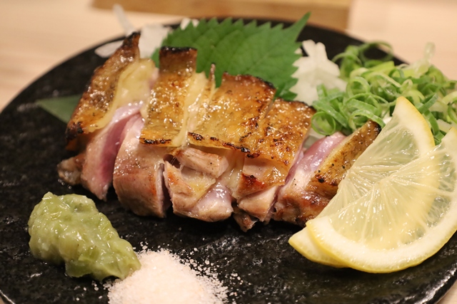 まずいただいたのは、「極み鶏のももたたき」。厚切りにされたもも肉は、ジューシーで旨みが凝縮されていて最高です。