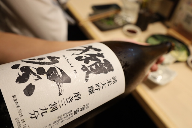 ここで、獺祭 磨き三割九分 純米大吟醸を注文。美味しい料理に、最高の日本酒が加わり、至福の時間が流れます。