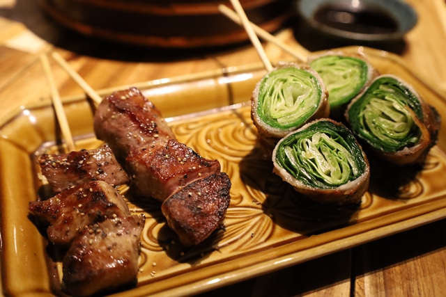 ヘルシーながらも肉の旨味が凝縮されたシャキシャキレタス豚巻きと、ジューシーで柔らかいトロ牛タンは必食。