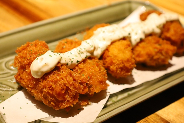 王道の牡蠣フライ&熱々TORA鶏YAの鉄板餃子