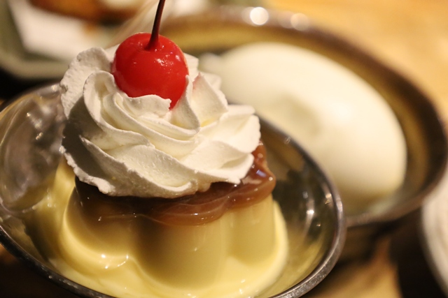 ホイップクリームと真っ赤なチェリーが添えられたその姿は、まさに昭和の喫茶店のような佇まい。程よい固さと優しい甘さが、火照った体に染み渡ります。