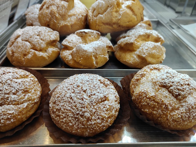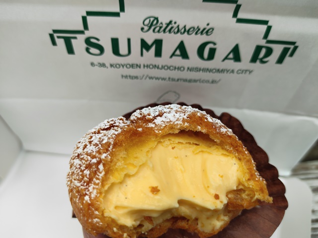 シュー生地にクッキーをのせて焼き上げ、カスタードクリームとフレッシュ生クリーム混ぜ合わせ詰めた一品で、濃厚でめっちゃ美味しい!