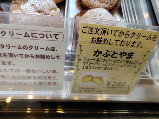 名物も数多く、特に「かぶとやま」は、シュー生地にクッキーをのせて焼き上げた香ばしい生地に、カスタードクリームとフレッシュな生クリームをたっぷりと詰め込んだ一品です。