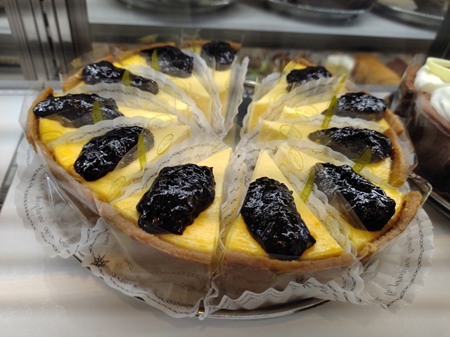 「ツマガリチーズタルト」(税込480円)は、フランス産と国産のクリームチーズを絶妙なバランスでブレンドした、なめらかで濃厚な食感のベークドチーズケーキ。口の中でとろけるようなチーズの風味と、サクサクとしたタルト生地のコントラストが楽しめます。宮崎産の太陽をたっぷり浴びて育ったブルーベリーで作った自家製ソースは、甘酸っぱさと爽やかさがチーズのコクを引き立てます。
