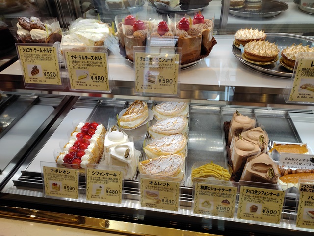 1階では生ケーキやシュークリームを10時から18時まで販売しており、2階では9時から18時までクッキーや焼き菓子が用意されています。