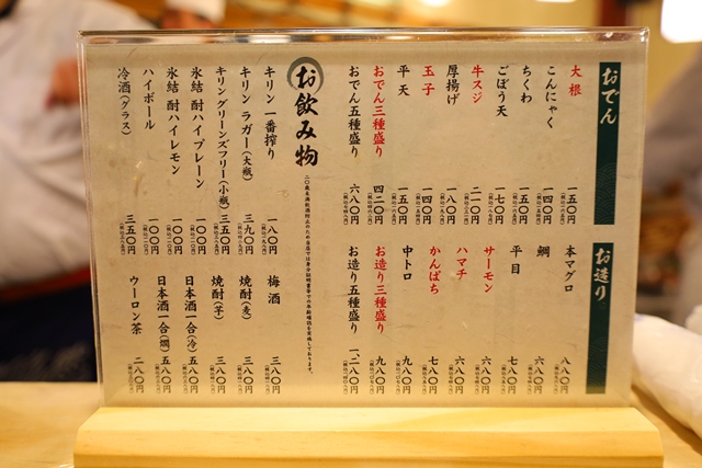 いつもなら地酒を選んでつい高額になりがちですが、「鶴すし」さんはお酒の価格もリーズナブル。冷酒グラスが350円(税別)、日本酒一合でも580円(税別)と、安心して飲み進められる設定なのがありがたいですね。