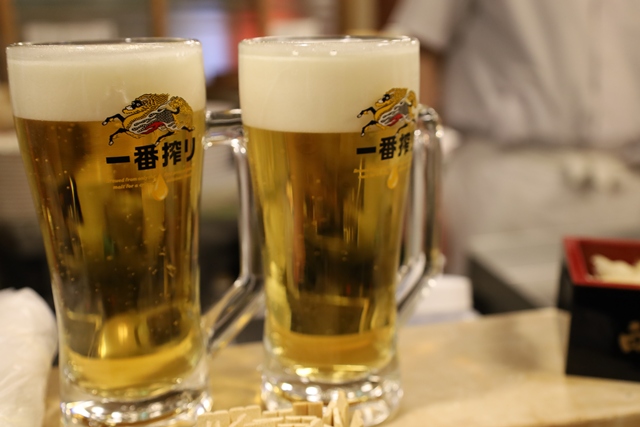 まずは生ビールで乾杯!キリン一番搾りの安定した美味しさ、これで180円(税別)は本当に嬉しいですね。